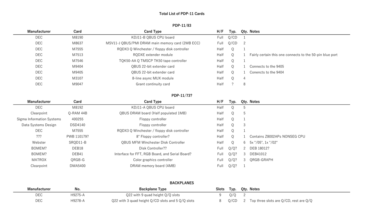 List of PDP-11 Cards: